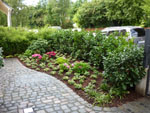 Schaffung eines neuen Sitzbereiches Materialmix Klinker/ Basalt Blütenaspekt weiß Pflanzung Größe ca. 50 m² |
